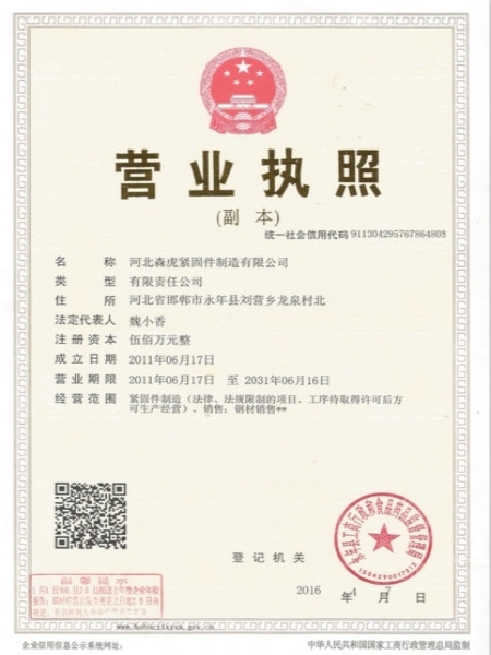 河北森虎緊固件制造有限公司成立于2011年,是建廠較早的緊固件企業。西臨京廣線,東臨京深高速,地理位置優越,交通便利。 主要生產:化學錨栓、機械錨栓、定型化學錨栓、高強度8.8級化學錨栓、自切底機械錨栓、車修壁虎,膨脹螺栓,植筋膠。 質量方針:先進技術、科學管理、優良品質、用戶滿意; ...
